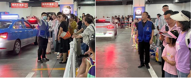 “請(qǐng)您到這邊排隊(duì)上車”“行李我?guī)湍帷薄罢?qǐng)小心身后車輛”,活動(dòng)當(dāng)天,地