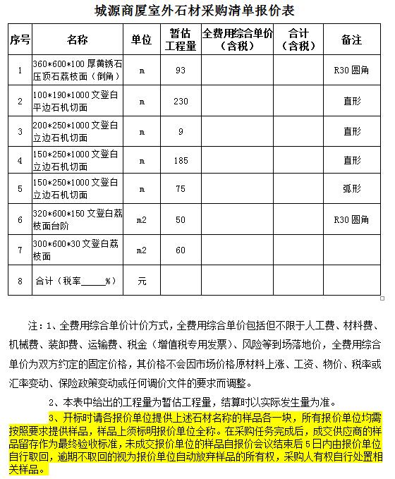 城源商廈室外石材采購項(xiàng)目