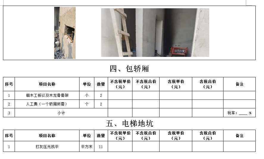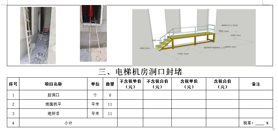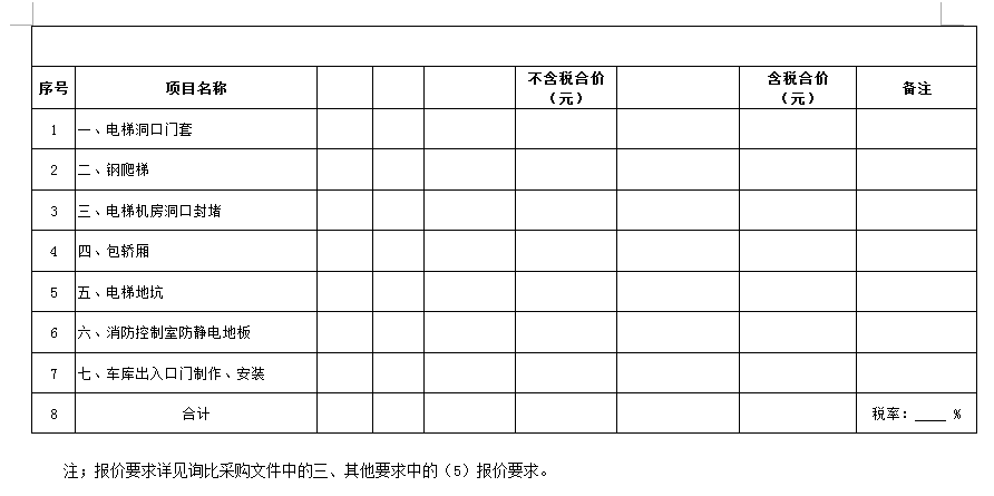 (5)采購范圍:電梯洞口門套、鋼爬梯、電梯機房洞口封堵、包轎廂、地面找平、地下車庫出入口真石漆等(詳見清單)等相關(guān)工作,具體內(nèi)容詳見采購文件。